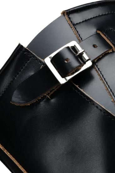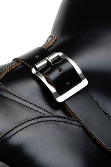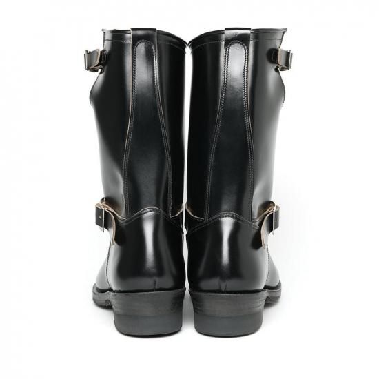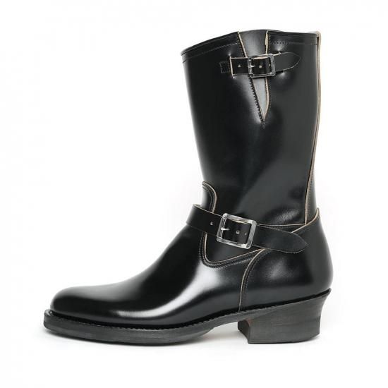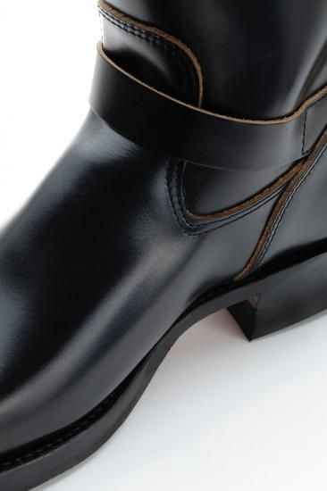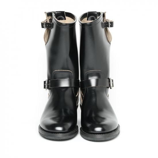 ガラスレザーを使用した、ドレスシューズのようなエンジニア ブーツ。