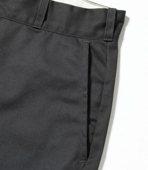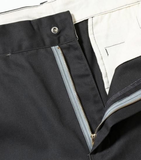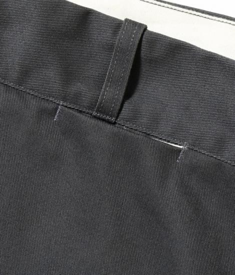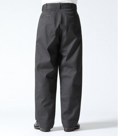 ポリエステル65%、コットン35%の混率で織り上げた頑丈なツイル生地を使用したワークトラウザース。2022年より展開し、好評を得ているTN42300のワイドシルエットタイプで、TN42300の仕様はそのままに股上をより深く設定し、ヒップから裾にゆとりをもたせた太めのシルエットとなっている。後右ポケット上に付くラベルは今回新たにデザインされたもの。