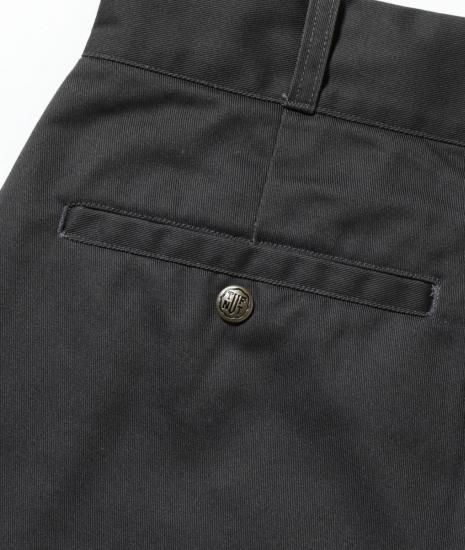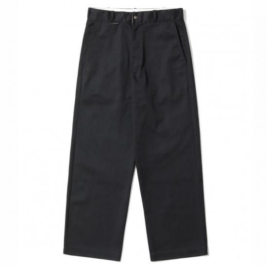 ポリエステル65%、コットン35%の混率で織り上げた頑丈なツイル生地を使用したワークトラウザース。2022年より展開し、好評を得ているTN42300のワイドシルエットタイプで、TN42300の仕様はそのままに股上をより深く設定し、ヒップから裾にゆとりをもたせた太めのシルエットとなっている。後右ポケット上に付くラベルは今回新たにデザインされたもの。