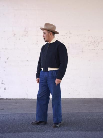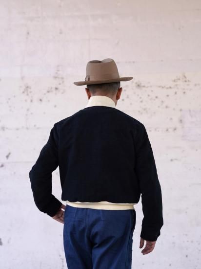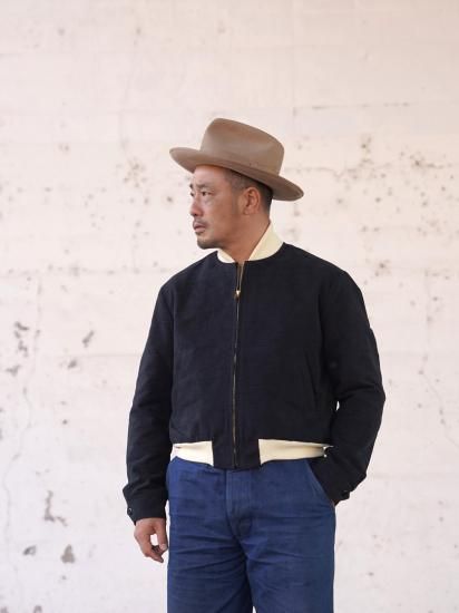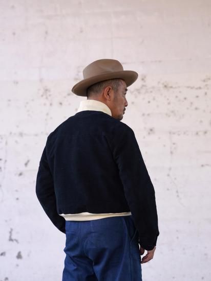 1950年代によくみられるコーデュロイのスポーツジャケット。レアなブラック×アイボリーです。オリジナル同様に忠実に制作し、生地はすべてグルービンのオリジナル生地を使用、ジッパーは勿論タロンジップ、ニットもいい感じで仕上がっています。